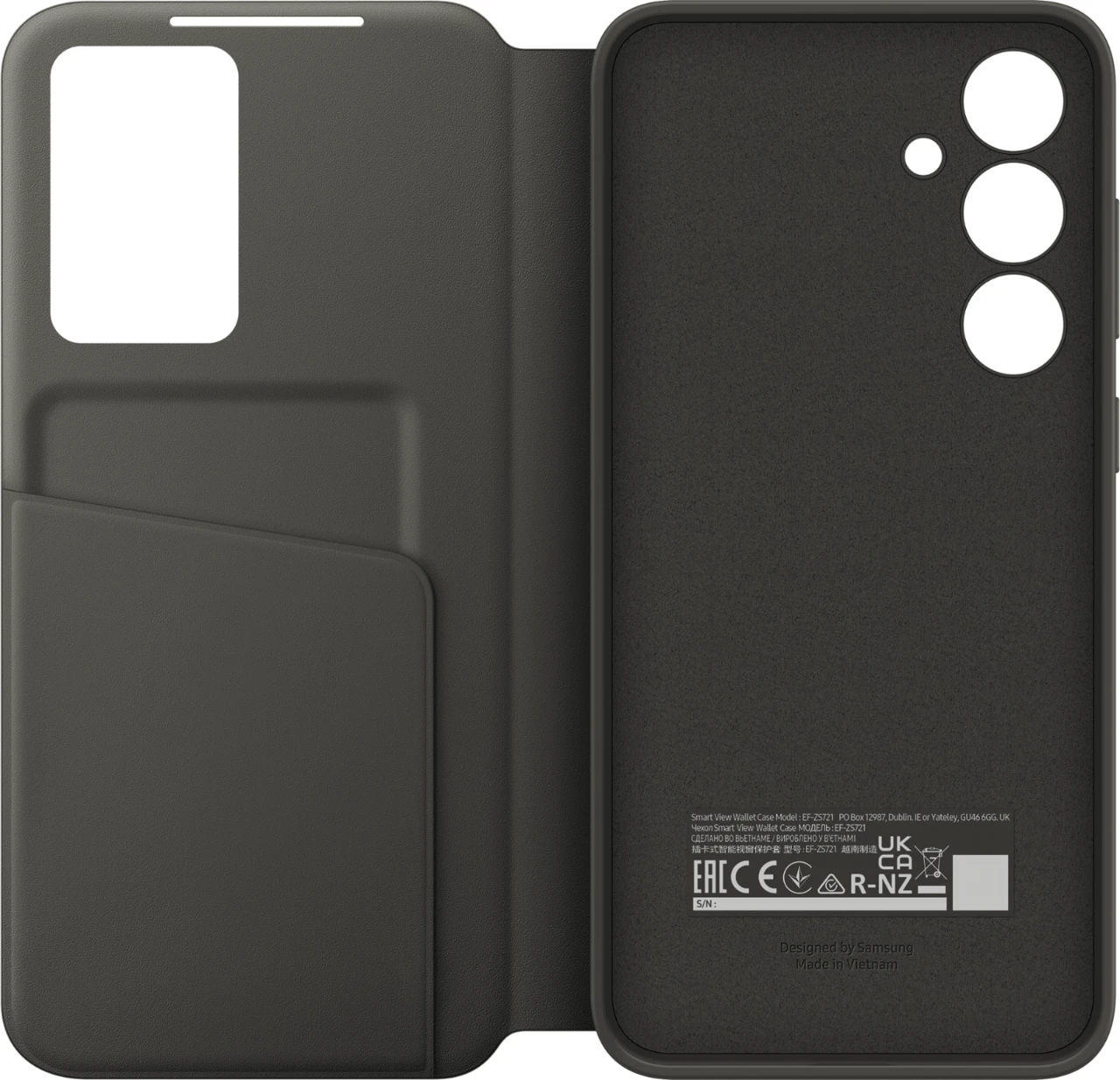 Funktional und sicher im Design – mit dem eleganten Smart View Wallet Case kannst du direkt auf das Display deines Galaxy S24 FE zugreifen, ohne das Case öffnen zu müssen.